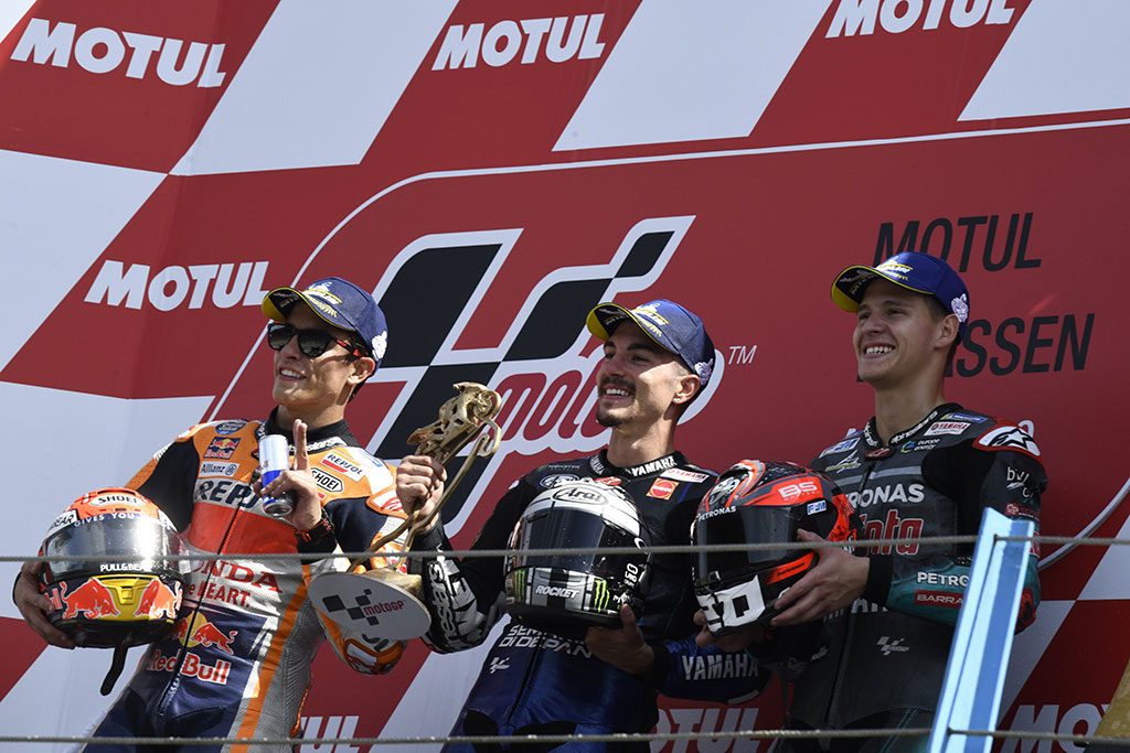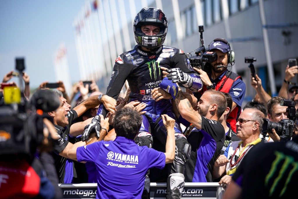 Maverick Viñales, Monster Energy Yamaha MotoGP #12: “Siento como si estuviera soñando. Éstos han sido tiempos difíciles para mí, porque he estado fuera de las tres pistas en las que creía que tenía más potencial con mi moto. Mi temporada ha sido difícil, pero he intentado mantener el impulso de Catalunya, porque me he sentido muy bien con la moto. Estoy muy agradecido al equipo, porque han hecho un gran trabajo este fin de semana y nos hemos preparado muy bien para las últimas vueltas de la carrera. Estaba muy fuerte, y sabía que podía hacer los adelantamientos en las frenadas. Era muy importante para nosotros aliviar parte de la presión con una victoria, y creo que el equipo estará más relajado ahora. Estar de nuevo en la cima del podio me hace sentir muy bien y llevar a Yamaha de vuelta a la victoria es muy importante para mí. Sabíamos que teníamos el potencial, pero no habíamos podido demostrarlo. Siempre es una combinación entre el esfuerzo del equipo, el del piloto y el de la moto. Sachsenring es una pista en la que generalmente soy rápido, así que haremos todo lo posible por hacer un buen resultado allí”.  [fuente Yamaha Racing]