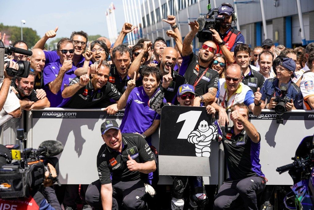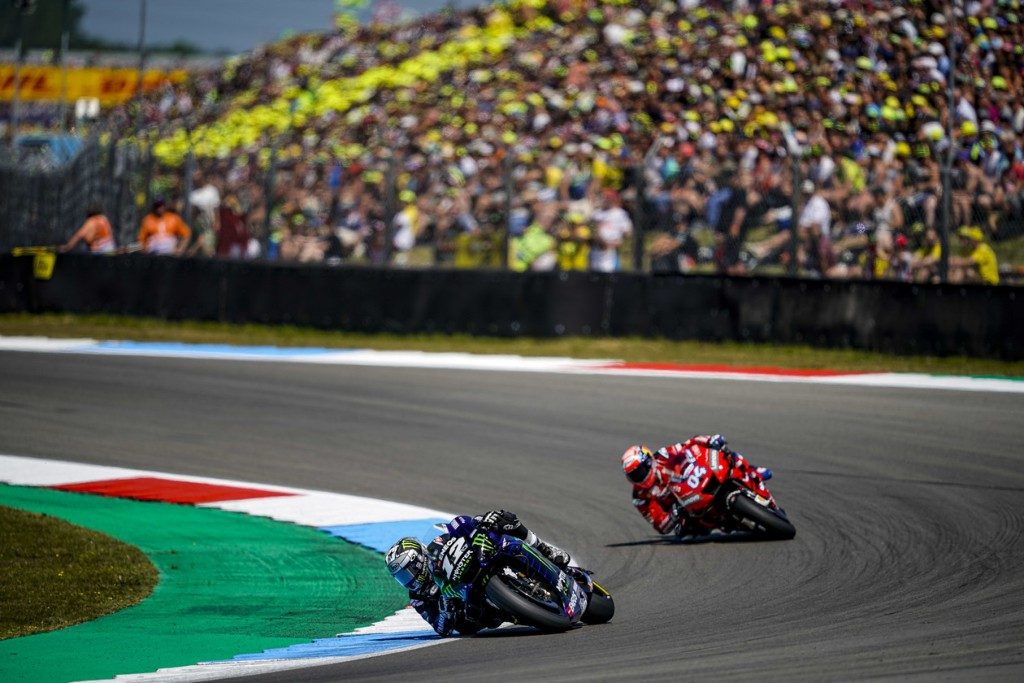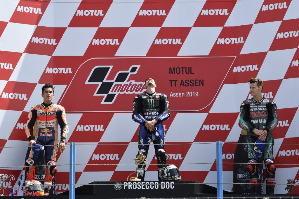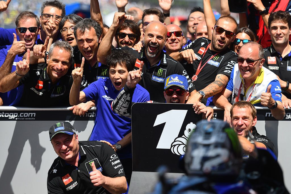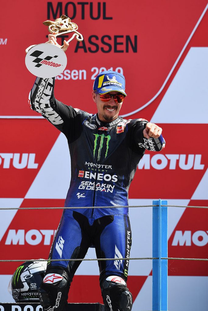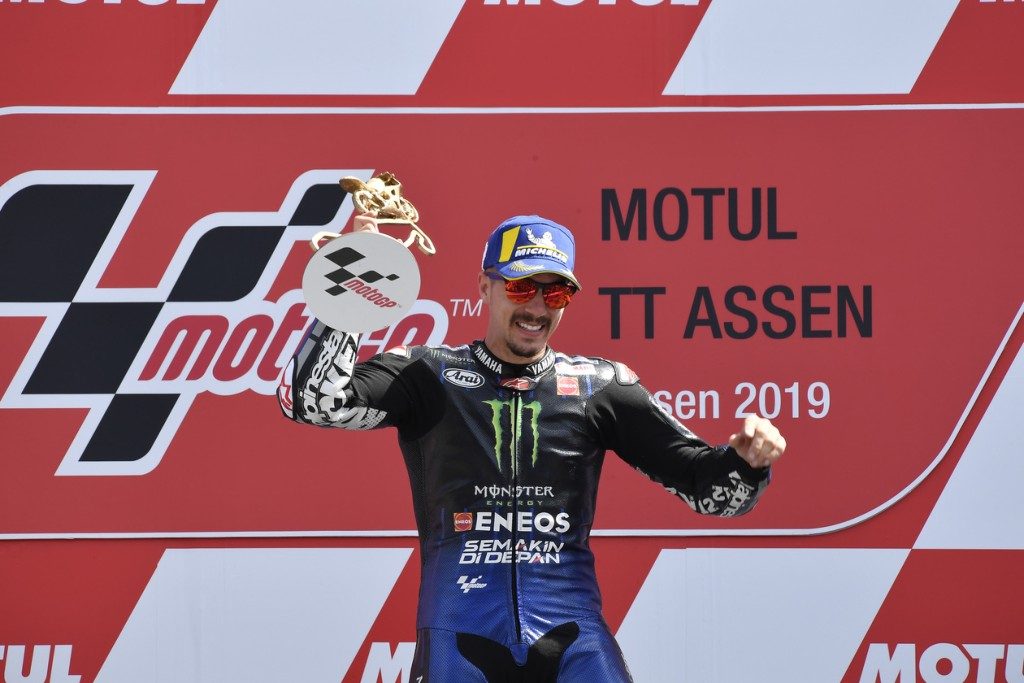 Fue un día de emociones mezcladas para el equipo Yamaha Monster Energy MotoGP en el circuito TT Assen. Maverick Viñales tuvo un brillante papel en la carrera de la ronda Motul TT Assen, montando su YZR-M1 hasta la victoria. Sin embargo, la racha sin suerte de Valentino Rossi continuó en los Países Bajos y éste sufrió un choque en la vuelta 5, terminando su Gran Premio prematuramente.