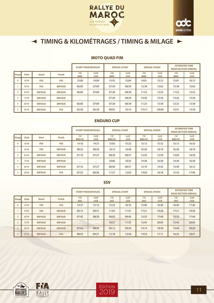 La acción arrancará el viernes 4 de octubre con una prólogo que sólo disputarán las motos y los quads (7 km). Al día siguiente se celebrará la primera etapa con salida en Fez y final en Erfoud (165 km de enlace y 329 km de especial).