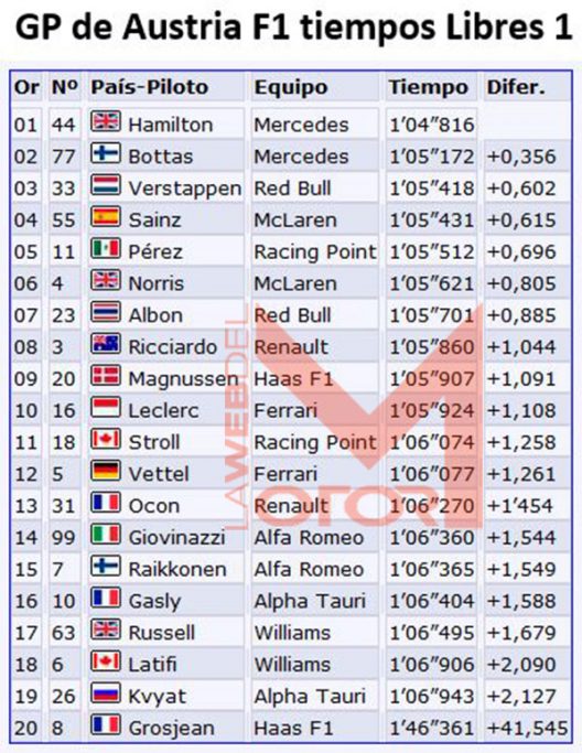 Hamilton el más rápido el viernes en Red Bull Ring